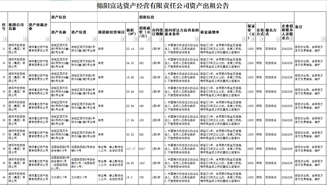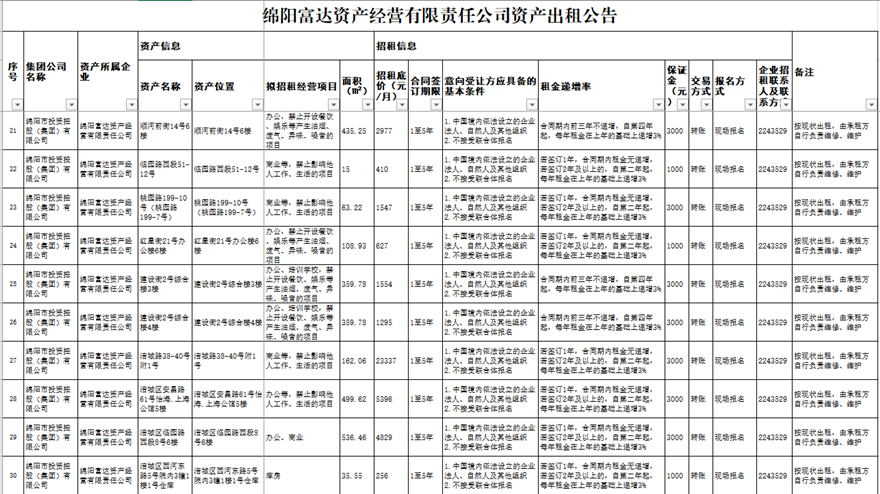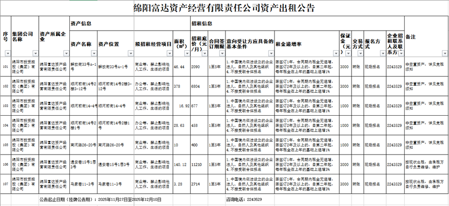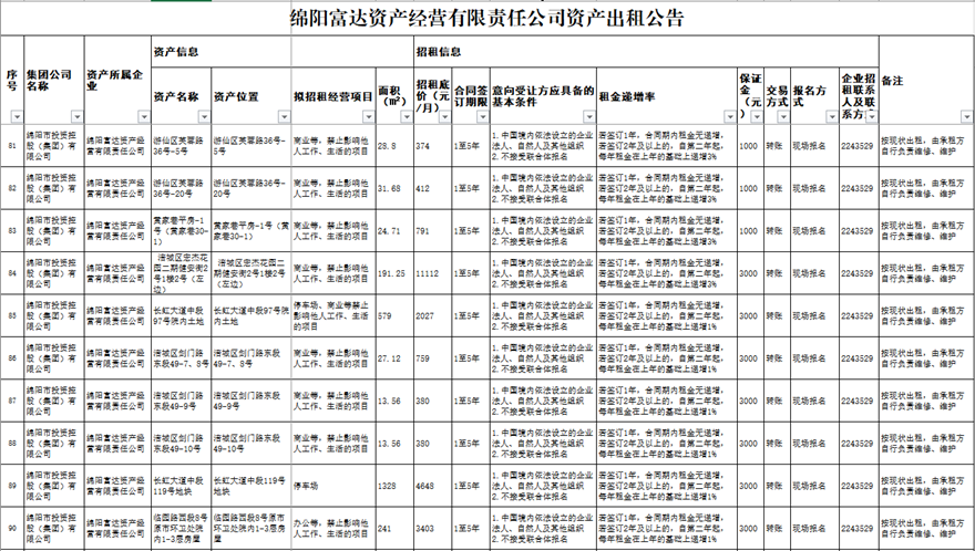 綿陽(yáng)富達(dá)資產(chǎn)經(jīng)營(yíng)有限責(zé)任公司資產(chǎn)出租公告