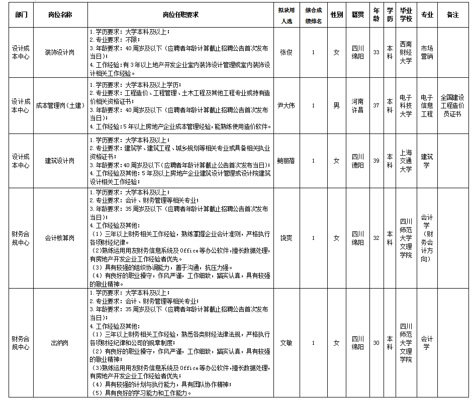 【公開招聘】綿陽市綿投置地有限公司關(guān)于裝飾設(shè)計崗等崗位擬錄用人選的公示