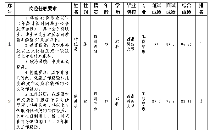 【內(nèi)部競聘】綿陽市城市停車管理有限公司 關(guān)于綜合部副經(jīng)理崗競聘成績的公示