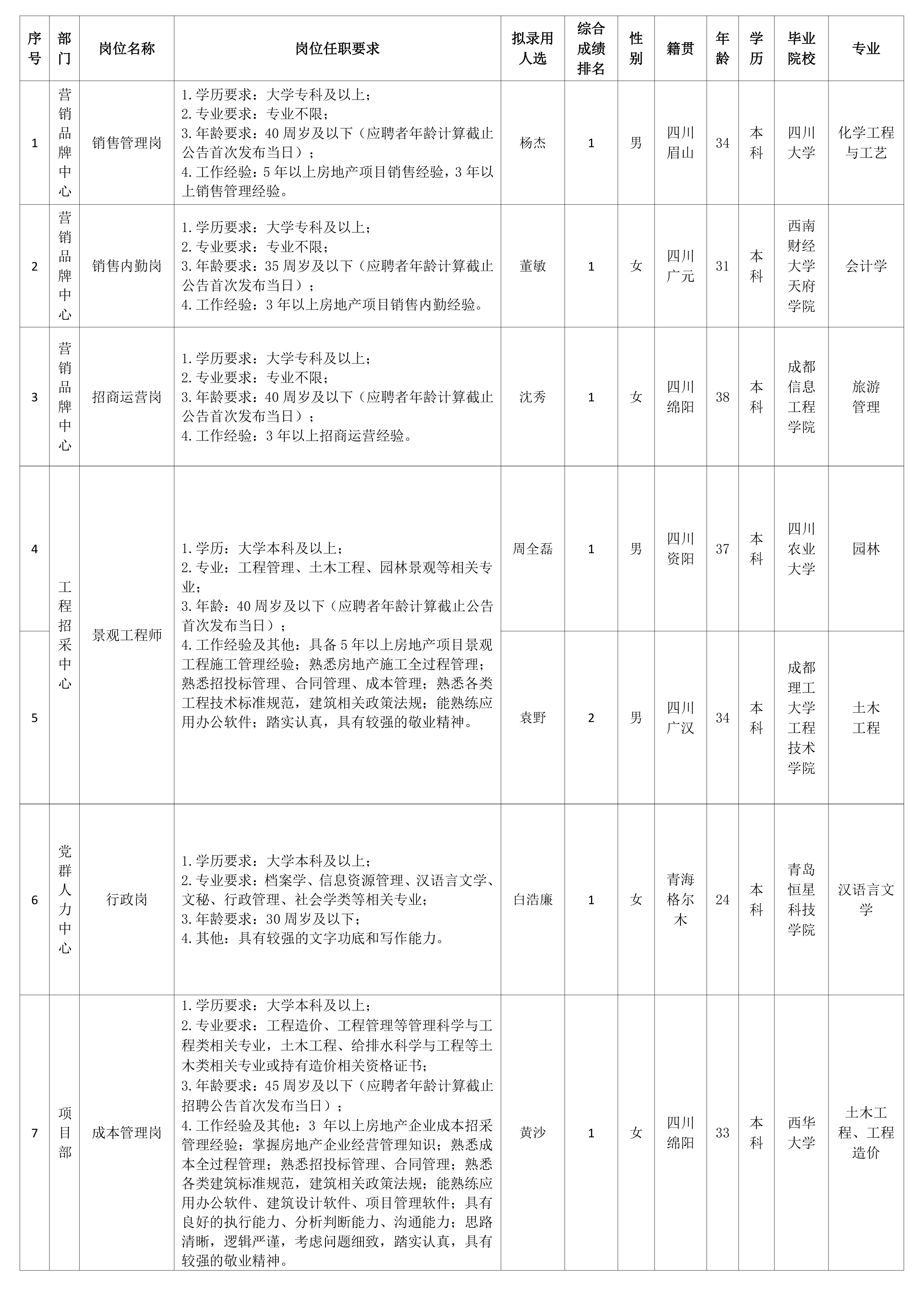 根據(jù)綿陽市綿投置地有限公司發(fā)布的招聘公告及招聘相關(guān)規(guī)定,經(jīng)筆試、面試、考察、體檢等程序,擬錄用楊杰等同志到綿陽市綿投置地有限公司工作,現(xiàn)予以公示,具體情況如下: